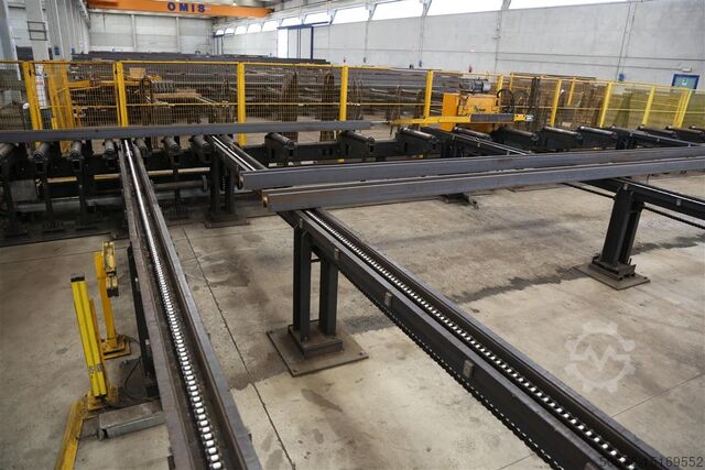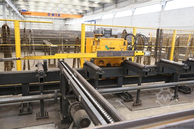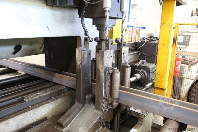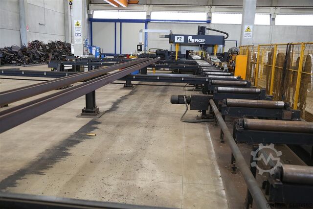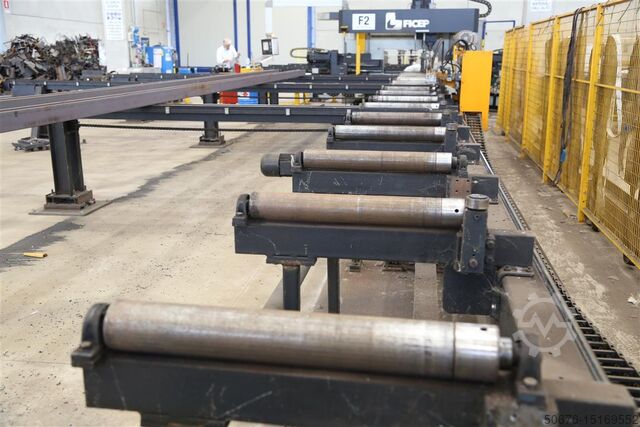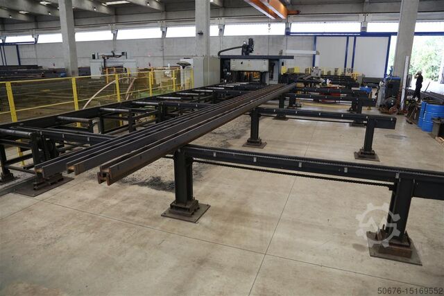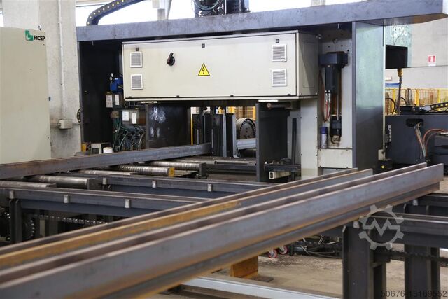 Ficep DZ 603 - это чисто сверлильный станок с 3 осями сверления для обработки профилей. Этот 3-осевой сверлильный станок предназначен для обработки профильных балок в стальных конструкциях. Стальные профили можно сверлить и перфорировать автоматически по 3 осям (фланец и полотно). Программирование сверлильной системы осуществляется с помощью системы ЧПУ Mitrol с программным обеспечением Arianna. Данные CAD в формате DSTV или DXF преобразуются в ЧПУ и станок запускает программу, в которой оси перемещаются в заданное положение. Захватная измерительная каретка позиционирует профиль в соответствующей позиции сверления в сверлильном узле. 5-кратное устройство смены инструмента обеспечивает быструю смену сверл на отдельных осях сверления. Стабильный роликовый конвейер транспортирует стальные профили в зонах подачи и выгрузки.