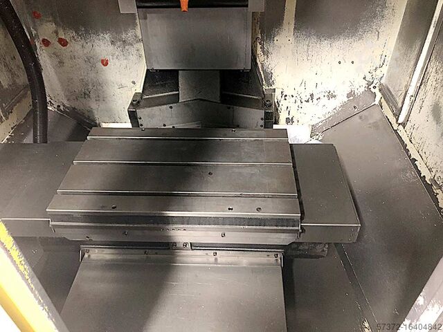 Траектория перемещения X/Y/Z: 500мм/380мм/300мм, размеры стола X/Y: 650мм/380мм, скорость: 8000 об/мин, конусность шпинделя: BT30, позиций инструмента: 14, мощность шпинделя: 7.5PS, макс. нагрузка на стол: 200кг. Размеры X/Y/Z: около 1600мм/1900мм/2300мм, вес: около 2000кг, управление: Fanuc Series 16i-M. Дефекты: Переключатель диапазона устройства смены инструмента и реле тормоза оси Z.