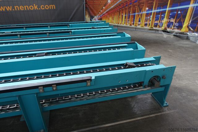 Поперечные тракторы как система цепной тяги для поперечной транспортировки профильной стали в стальном строительстве и металлургии. Эти прочные поперечные тягачи использовались на ленточнопильной линии Kaltenbach и находятся в очень хорошем состоянии.