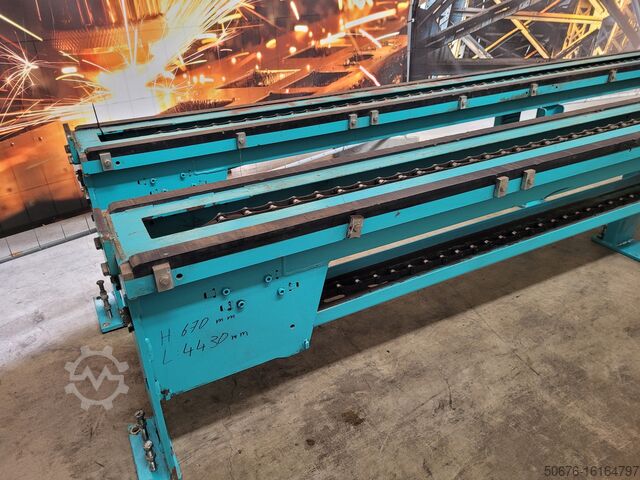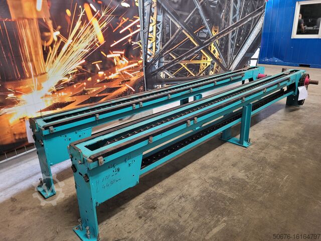 Поперечные тягачи в качестве цепной буксировочной системы для поперечной транспортировки сортового проката в стальном строительстве и торговле сталью. Эти устойчивые поперечные тягачи использовались на линии распиловки и сверления Kaltenbach.