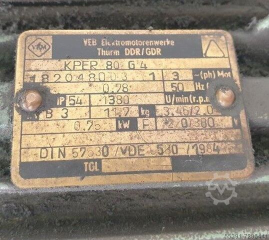 Согласно информации на установленной табличке, сверлильный станок приводится в действие электродвигателем VEM Elektromotorenwerke Thurm. Электродвигатель