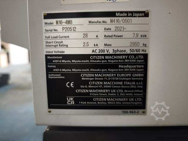 Станок Citizen M16 VIII оснащен насосом высокого давления Mueller CL1, коллектором масляного тумана FOX WS 2 - 1000, барфидером Minimag 20.