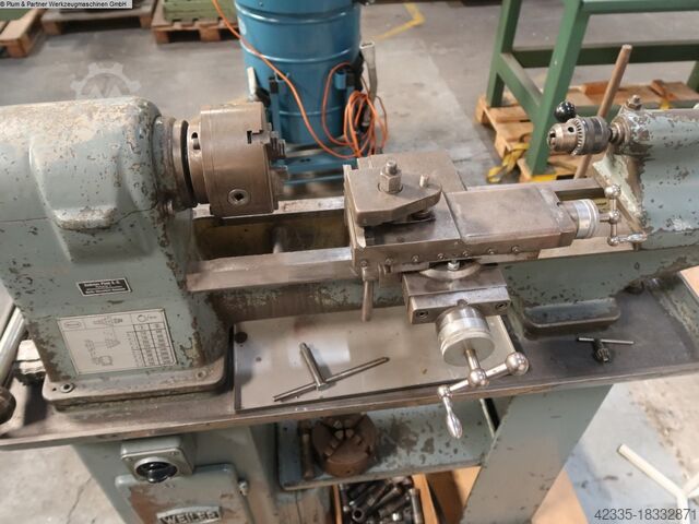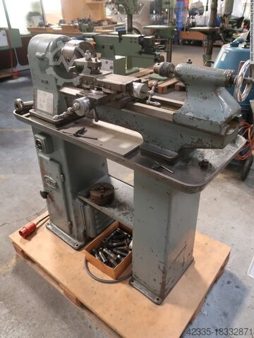Токарно-механический станок с ручной подачей и поддержкой шпинделя, привод через клиновые ремни и ступенчатые шкивы