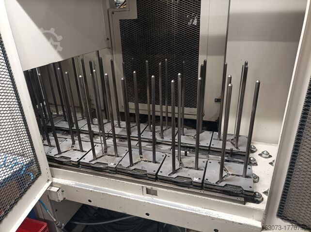 Система управления Fanuc. Зажим V8NC. Макс. обрабатываемый диаметр: 350 мм, макс. длина заготовки: 200 мм, макс. диаметр до штабелера: 160 мм. Количество позиций инструментальной головки: 10+10. Вес: 5700 кг. Габариты: 2700x2825x2615 мм.