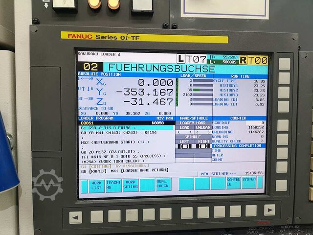 Высокоточный токарный станок с ЧПУ Takisawa с двумя шпинделями. Мощность шпинделя: 2x 7,5 кВт, скорость: 5000 об/мин, нос шпинделя: F-80, держатель инструмента: 2x 5 мест, макс. диаметр точения: 50 мм, макс. длина точения: 50 мм, макс. вес заготовки: 2x 0,5 кг. Размеры станка X/Y/Z: ок. 2600мм/2550мм/2150мм, вес: ок. 4300кг, управление: 2x Fanuc Oi-TF, часы работы: 11179ч. Включая откидной ленточный конвейер сзади, автоматическую центральную смазку, обшивку станка с насосом охлаждающей жидкости, портальный загрузчик типа D, загрузчик Raku Raku, поворотную станцию, автоматическую дверь для загрузки и выгрузки каждого шпинделя и желоб для хранения тестовой детали. Имеется документация. Возможна инспекция на месте.