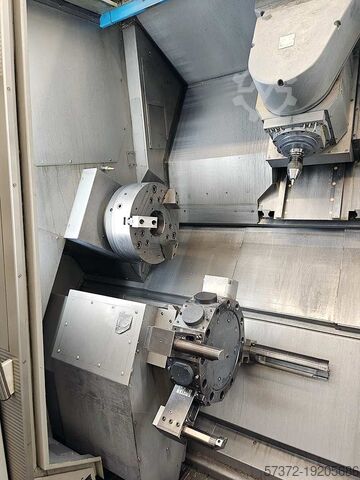 В наличии имеется двухшпиндельный токарно-фрезерный центр с ЧПУ Gildemeister, включающий систему охлаждения и смазывания, а также транспортер стружки. Диаметр обработки над станиной: 640 мм, диаметр обработки: 400 мм, межосевое расстояние: 1930 мм, перемещение по осям X/Z: 550 мм/1585 мм, перемещение по оси Y: +/-110 мм, ось B: +/-120° (интерполяция), ось C: 360°. Главный шпиндель: мощность: 36 кВт/45 кВт, скорость: 4000 об/мин, крутящий момент: 600–730 Нм, диаметр отверстия: 107 мм. Фрезерный шпиндель: скорость: 12000 об/мин, мощность: 13,2 кВт/22 кВт, крутящий момент: 100 Нм. Позиции инструмента: 60, держатель: 12-позиционная звездообразная револьверная головка SW 380. Габариты станка X/Y/Z: прибл. 9300 мм/4600 мм/3100 мм, вес: прибл. 20000кг, управление: Siemens Sinumerik 840D powerline. Документация доступна. Возможен выездной осмотр.