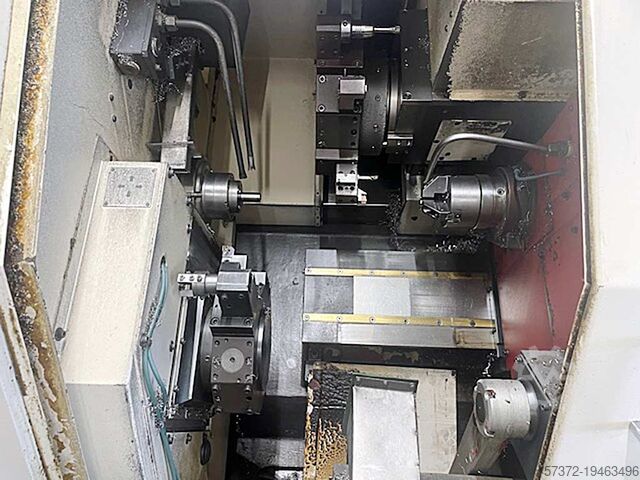 Диаметр прутка: 51 мм, диаметр цанги (контршпиндель): 41 мм, диаметр точения: 120 мм, длина точения: 90 мм, скорость вращения шпинделя: 4000 об/мин, мощность основного/контршпинделя: 11 кВт/5,5 кВт, ход по осям X1/Z1/X2/Z2: 150 мм/380 мм/115 мм/125 мм, револьвер: 2, позиции инструмента сверху/снизу: 12/10. Габариты станка X/Y/Z: ок. 2600 мм/1900 мм/1950 мм, вес: ок. 6300 кг. Деталь Fuji (см. изображение 5) неисправна. Документация в наличии. Возможен осмотр на месте.