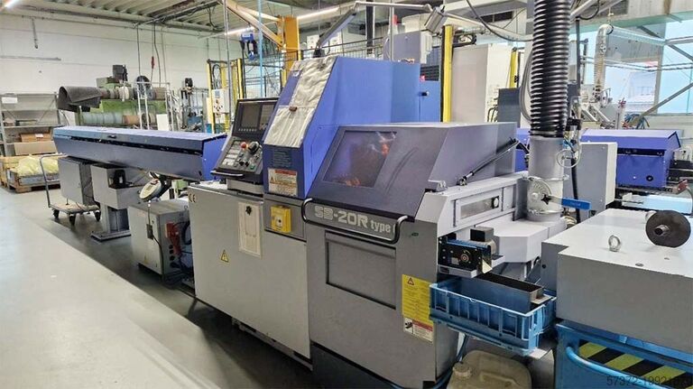 Макс. диаметр зажима: 20 мм, макс. длина заготовки: 205 мм (тип GB), 45 мм (тип NGB), диаметр подхватывающего шпинделя: 20 мм, проходное отверстие подхватывающего шпинделя: 21 мм, макс. частота вращения подхватывающего шпинделя: 9000 об/мин, мощность главного шпинделя: 2,2 кВт (постоянно)/3,7 кВт (10 мин / 25% ПВ), мощность подхватывающего шпинделя: 0,55 кВт (постоянно)/1,1 кВт (15 мин / 40% ПВ), скорость вращения приводного инструмента: макс. 6000 об/мин, мощность мотора инструмента: 1 кВт (постоянно)/1,2 кВт (5 мин / 30% ПВ), система управления: Fanuc 0i-TD, подключаемая мощность: 3,74 кВА, уровень шума: 74 дБ(А), длина: 2070 мм, ширина: 1177 мм, высота: 1760 мм, вес: 1700 кг. С автоматическим загрузчиком прутков для прутков макс. 3200 мм и автоматическим магазином для прутка диаметром 2-20 мм. Возможен осмотр на месте.