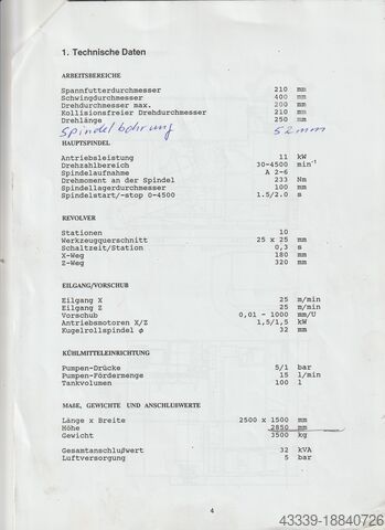 Диаметр отверстия шпинделя: 52 мм