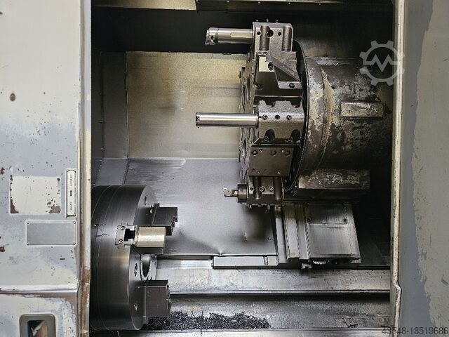 Токарный станок с ЧПУ Mazak Slant Turn 40 MC с транспортером стружки. Год постройки 1985, вес 8 тонн. Система управления Mazatrol T3 с трехкулачковым патроном, револьверной головкой, задней бабкой. Можно посмотреть, готов к использованию и все еще находится под напряжением.