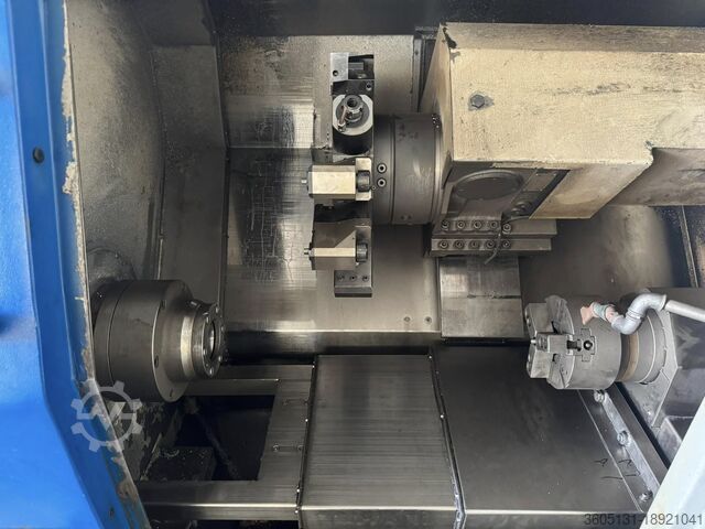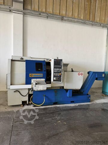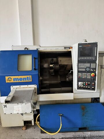Используемый моторизированный токарный станок с ЧПУ с контршпинделем MENTI 250 RP — это быстрый токарный станок с ЧПУ среднего и малого размера с наклонной станиной, с главным шпинделем ASA 6″ с осью «C», числовым программным управлением SIEMENS 840D, год выпуска 2002 в соответствии со стандартами «CE».