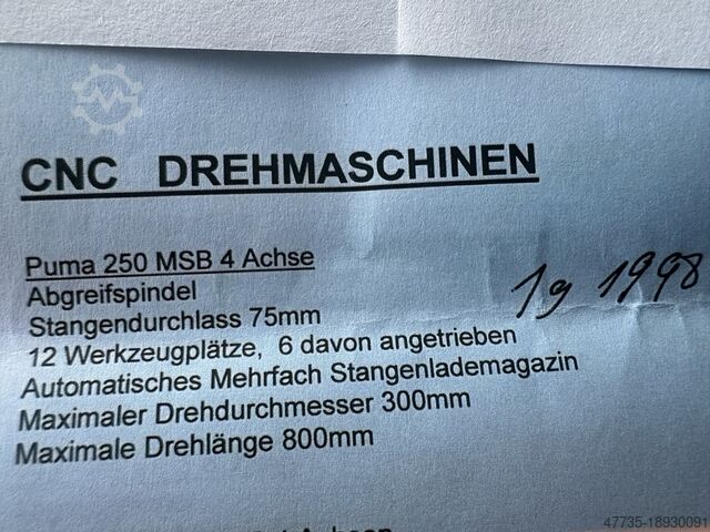 Токарный станок с ЧПУ DAEWOO PUMA 250 MSB
