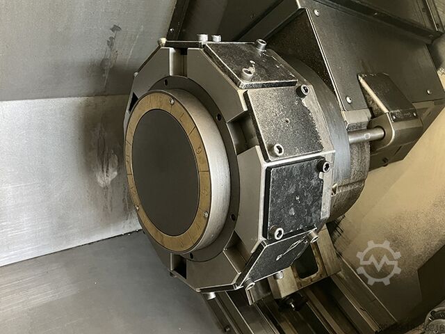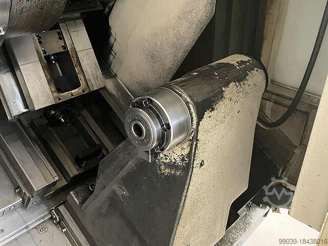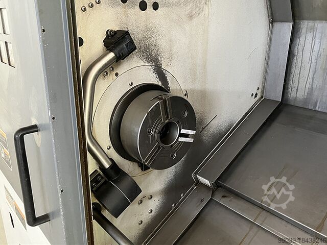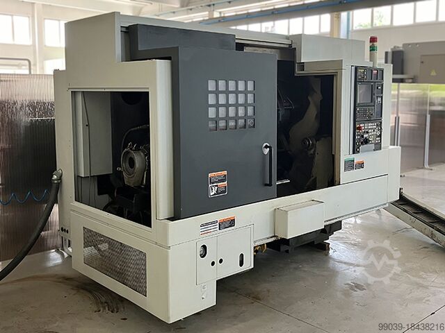 Год выпуска: 2005, система управления MSX-850, макс. диаметр обработки – 755 мм, макс. диаметр точения – 356 мм, макс. длина точения – 705 мм, проход для прутка – 80 мм, диаметр отверстия шпинделя – 81 мм, оснащён 3-кулачковым патроном Kitagawa BB210, диапазон зажима макс. 254 мм – мин. 41 мм, скорость вращения шпинделя 4000 об/мин, ход по оси X – 260 мм, ход по оси Y ±50 мм, ход по оси Z – 795 мм, быстрые перемещения по осям X/Z – 30-30 м/мин, револьверная головка на 12 позиций, скорость вращения приводных инструментов – 6000 об/мин, с задней бабкой (ход 734 мм, конус MT 3), габариты 3100x1920 мм, высота 2220 мм, масса 6200 кг, ленточный транспортер стружки, система пресеттинга, 4 держателя приводного инструмента и 7 статических, устройство для съёма детали.