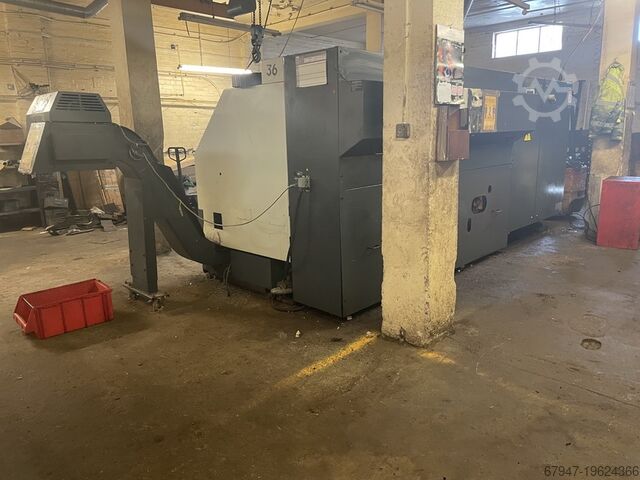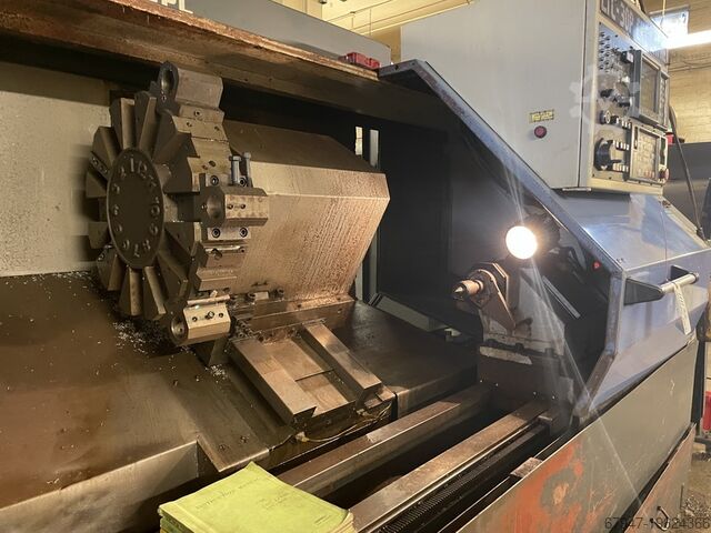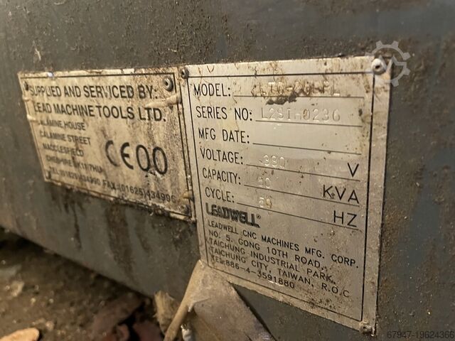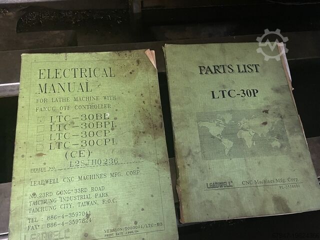 Leadwell LTC 30 BPL, токарный центр с ЧПУ и системой управления Fanuc OT, оснащён трёхкулачковым патроном диаметром 300 мм. Сделано в Японии, максимальный диаметр обработки примерно 700 мм, расстояние между центрами 1500 мм, отверстие шпинделя 80 мм, ножная педаль оператора, серийный номер L2SIH0236, транспортер стружки.