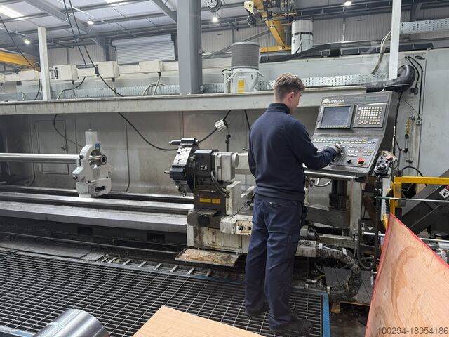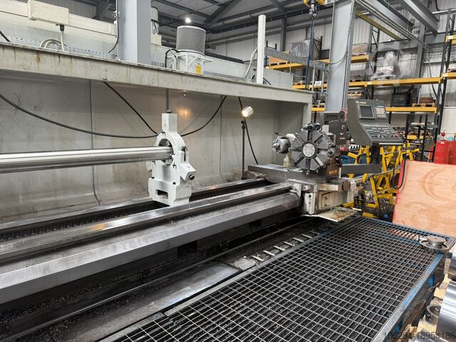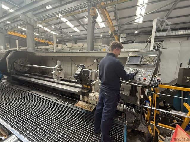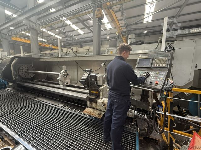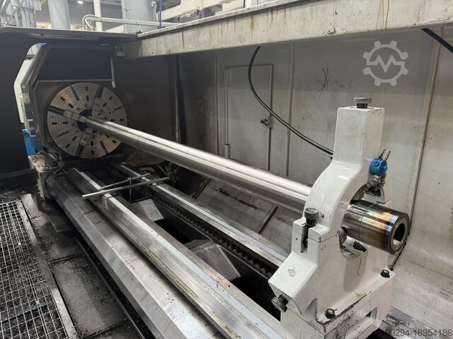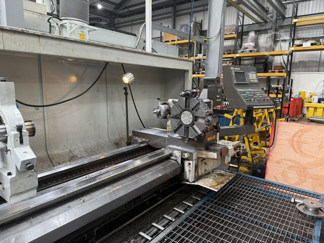 Токарный станок с ЧПУ Hankook Protec 9NC x 5000 с управлением Fanuc 32i и большим отверстием шпинделя.