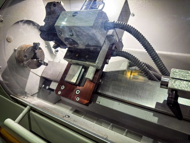 Станок оснащён задней бабкой, трехкулачковым патроном, специальным револьвером для инструмента, мобильной рабочей станцией и соответствующими аксессуарами.