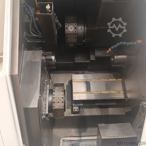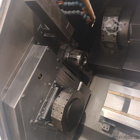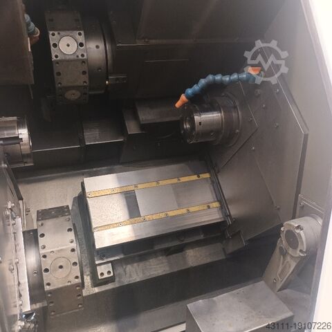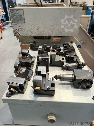 12-позиционная верхняя револьверная головка (6 из них приводные) - 10-позиционная нижняя револьверная головка (5 из них приводные) - противошпиндель - 2 оси C - оснащен загрузчиком прутка LNS Sprint S2 с передним магазином, фиксированными и приводными держателями инструмента, руководствами - Управление Fanuc 18T