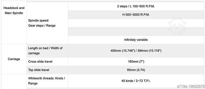 - Длина перемещения по станине/ширина суппорта: 400 мм / 384 мм
