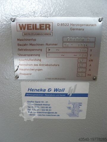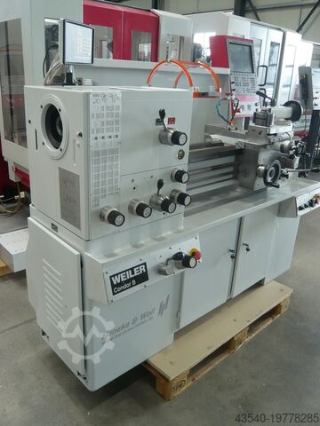 Токарный станок с передней бабкой Weiler, модель Condor B, с ходовым и приводным винтом, оснащён цифровой 3-осевой индикацией от K&C (НОВАЯ), из учебной мастерской!