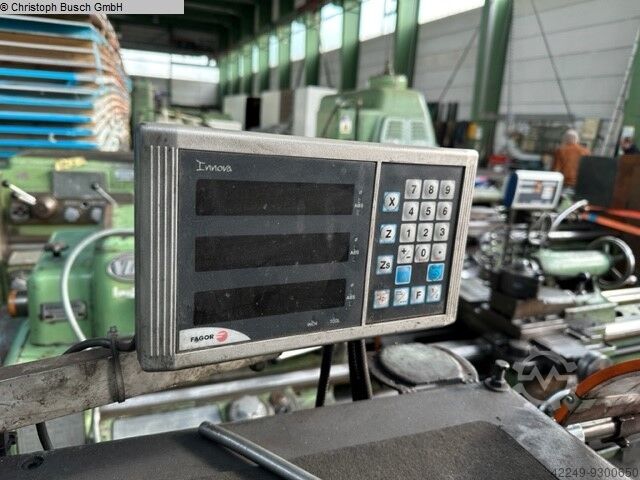 Токарный станок . Год выпуска примерно 1990 расстояние между центрами 1400 мм Циркуляция макс. 505 мм Цифровой дисплей . Мост станины . Многократный подборщик Boc R Ncjk N Izmo Ifnsdd Вес машины ок. 2,3 т