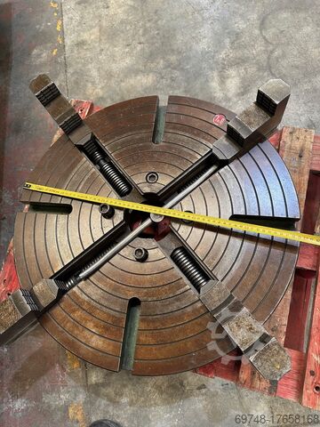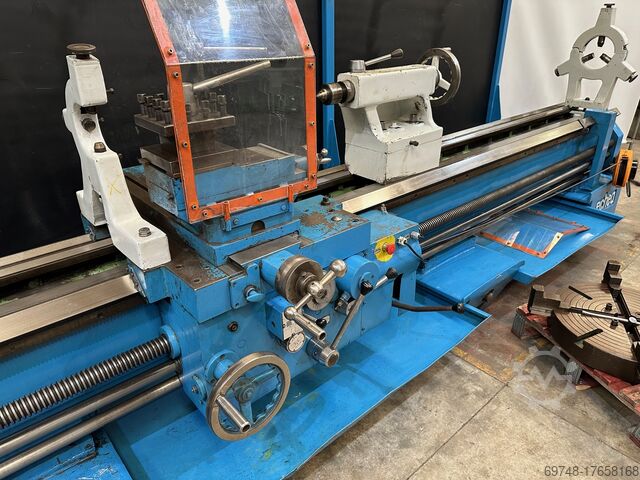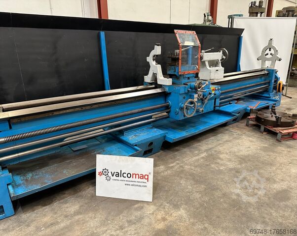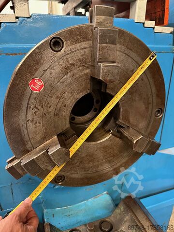 Токарный станок Echea модель AII диаметром 5000мм э.п. на станине 750мм, на вырезе 1050мм, на каретке 500мм, диаметр отверстия хвостовика 84мм, 12 об/мин двигателя от 8-850 об/мин, на нем установлена плита 400мм универсальная из 3 челюстей autocentrante и плита независимых челюстей 600мм, с фиксированным и мобильным устойчивым упором, токарный станок с защитами, в целом в хорошем состоянии.