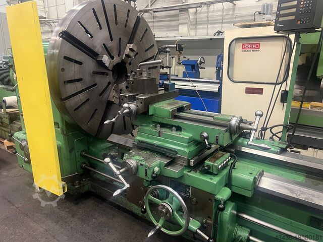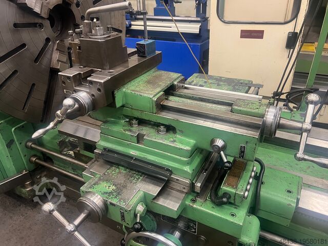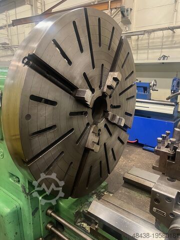 4-кулачковый патрон 1 300 мм, диаметр обработки в вырезе 1 500 мм, над станиной 1 050 мм, проход шпинделя 80 мм, 1,5–266 об/мин,