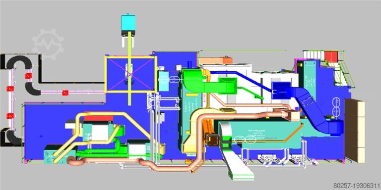 1 бывшая в употреблении линия покраски с циркуляционным конвейером, ручная покрасочная камера для образцов, автоматическая покрасочная камера с роботом и вращающимся держателем заготовки, система обратного осмоса, подготовка краски, очистка отработанного воздуха.
