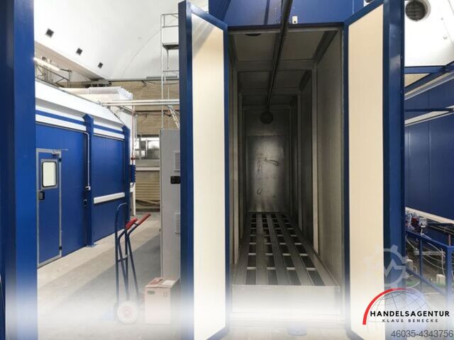 Очистительная кабина предназначена для автоматической очистки. Можно распылять при среднем давлении. В кабине имеется 7 различных баков для опрыскивания. Размеры деталей: макс. Д= 6000 мм, Ш = 2000 мм, В = 2300 мм.