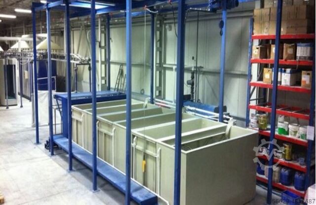 Основан на принципе очистки и обработки поверхности, заключающемся в том, что материал, подлежащий поверхностной очистке, помещается в корзины общего применения и погружается краном в резервуары, содержащие химические вещества и/или воду, и оставляется там на некоторое время. Целью является удаление существующего масляного слоя на поверхности металла и создание тонкой пленки на поверхности металла, что делает материал более дружественным к краске и устойчивым к внешним воздействиям.