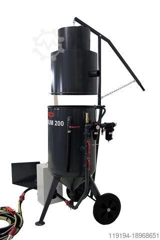Дробеструйная установка SAPI премиум-класса объемом 200 литров с циклонным очистителем и отсосом абразива для подготовки абразива. Эта система дробления представляет собой экономичное, высокоэффективное и эффективное решение для открытых дробеструйных работ с полуавтоматической переработкой абразива.