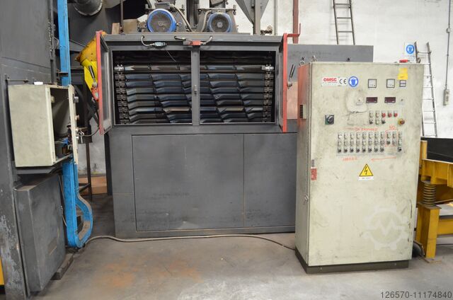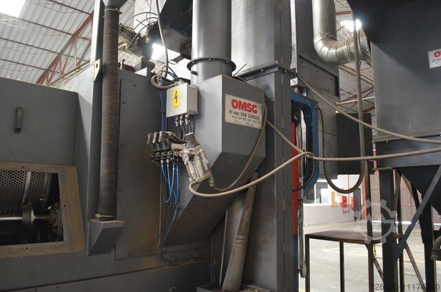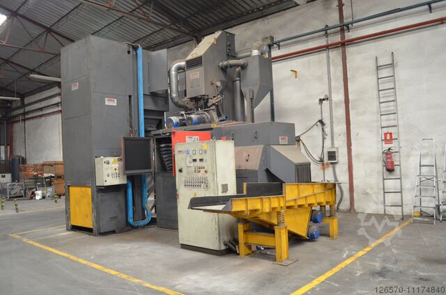 Дробеметная установка с непрерывной лентой для дробеметной обработки алюминиевых, латунных или стальных поковок, винтов и болтов.