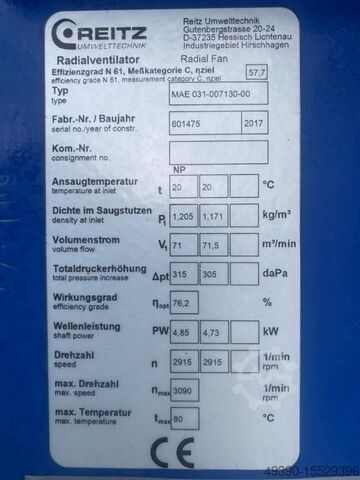 Радиальный вентилятор как новый, вытяжной вентилятор, фланцевое всасывание, фланцевый вентилятор REITZ