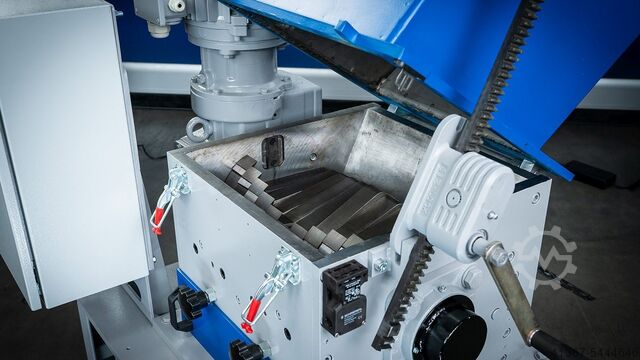 «V-образное» расположение лопастей ротора удерживает предварительно измельченный материал в центре ротора. Это значительно снижает износ стенок камеры измельчения при измельчении стеклопластиков. Исключается прилипание материала к боковым стенкам. Поскольку диски ротора расположены со смещением, одновременно используются только отдельные лезвия, поэтому в каждом случае достигается более высокая сила резания.