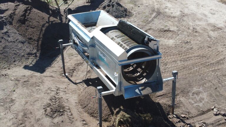 Компактная, полустационарная, электроприводная барабанная сортировочная машина для просеивания извлеченного материала, грунта, камней, строительного мусора или других просеиваемых материалов!