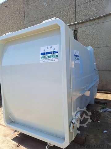 Новый пресс-контейнер 10 куб. м с защитой от протечек, подходит для прессования смешанных отходов, цвет RAL 9018 папирусно-белый, загрузочная крышка на передней стороне на петлях, сигнализация 80% заполнения и полного состояния, проверка DGUV по стандарту 214-016 при поставке нового изделия