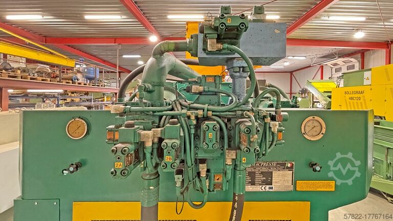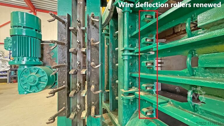 Продается подержанная система прессования, состоящая из цепного ленточного конвейера для работы под полом, с загрузочным бункером, гидравлического прессподборщика с вихревым устройством, пресса MACPRESSE 111A, двух комплектных рамок для волочения проволоки с 5 стойками для проволочных валов каждая, без проволоки.