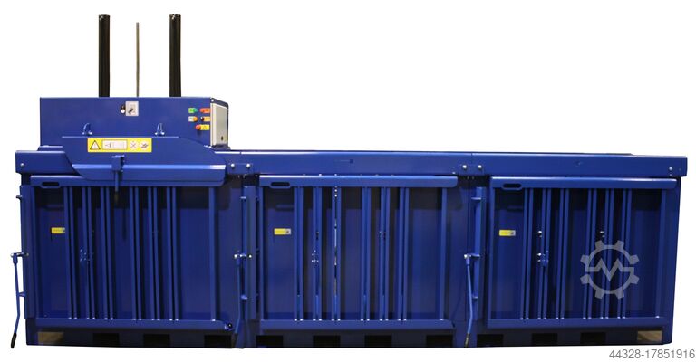 BTS-MF200MK — идеальный многокамерный пресс-подборщик для прессования отходов картона и пленки в тюки массой до 200 кг. Различные материалы могут быть собраны в две или более прессовальные камеры, расположенные рядом друг с другом, и как только одна камера заполнена, прокатная прессовальная головка перемещается над ней и материал прессуется.