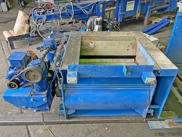 Пластиковые контейнеры затягиваются двумя вращающимися валами. Один из вращающихся валов пневматически натягивается двумя воздушными сильфонами и прижимает ПЭТ-бутылки ко второму вращающемуся валу с давлением 16 тонн. Герметичный пластиковый контейнер сжимается, лопается и выпускает воздух. Остатки жидкости вытекают, и материал падает в пресс для прессования, предварительно уплотнившись. При попадании примесей пневматический вал с предварительным натяжением смещается в сторону и пропускает примеси.