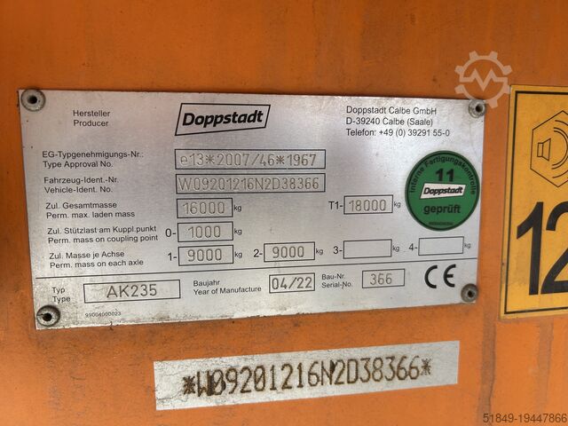 - Шасси прицепа с центральной осью, 2 оси, разрешённая скорость 80 км/ч, разрешение на движение по дорогам общего пользования