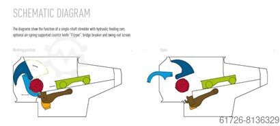 - Верхний зажим; идеально подходит для измельчения объемных отходов низкой плотности.