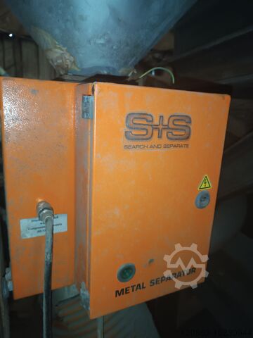 для сортировки металлических деталей из потока материала. Материал проходит в канал, а металлические части выходят из другого канала.