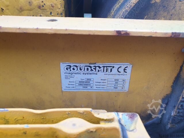 Электрический подвесной ленточный магнит с лентой шириной 1400 мм, основные размеры примерно 3500x2000x900 мм (ДхШхВ). недавно использовался и оснащен новой ленточной резиной с носителями. Bsc R Njiyx Eyec Ifnoli