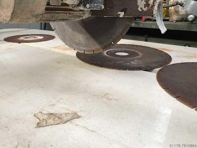 Состояние станка: Б/у, проверено (отсутствует водяной насос). Циркулярная пила для мраморных плит, отрезной диск 400 мм, длина стола 2000 мм, полезная длина реза 1600 мм. Двигатель мощностью 2 л.с. трехфазный, б/у
