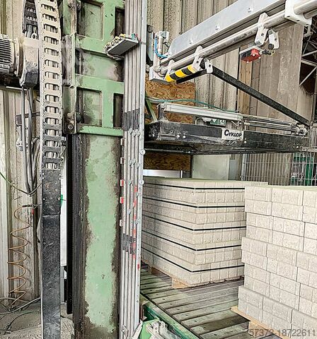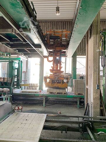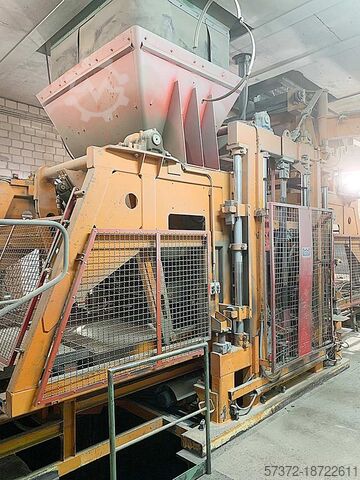 Предлагается полная и автоматизированная линия по производству брусчатки OMAG. Компоненты: 1) Чертежная плита для Colormix в бункере. 2) Система промывки InLine. 3) Сушильные боковые рекеры. 4) Перегрузочные рекеры. 5) Система управления рекерами. 6) Вилочная каретка рекера. 7) Часть стеллажей сушильной камеры, так как они являются носителями груза для здания. 8) Дощатый кран в качестве буферной россыпи и пустых досок. 9) Горизонтальная обвязка Cyklop. Без обвязки досок и щитов. Подача бетона: 2-осевой ковш, производительность с брусчаткой 90x90: 1000-1100/смен, размер доски: 1000мм/1400мм, макс. размер формата: 1000мм/1400мм. Полностью новая система управления OMAG в 2017 году, переход на пропорциональные клапаны в 2014 году, документация в наличии. Возможен осмотр на месте.