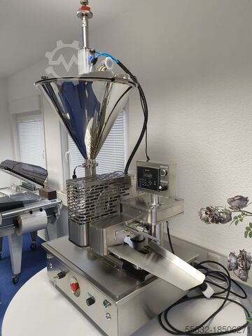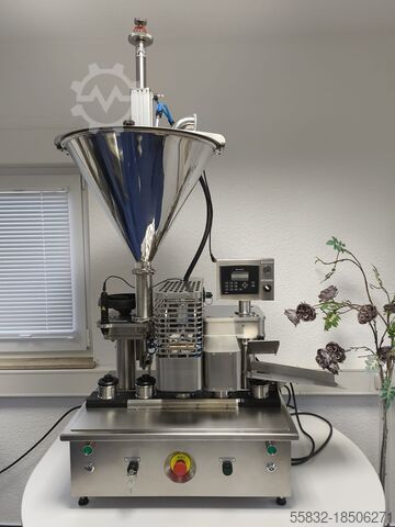 Компактная, очень эффективная настольная машина для наполнения алюминиевых туб кремами, гелями или аналогичными густыми жидкостями. Трубки сложены вдвое и одновременно закодированы.