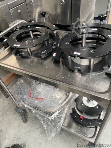 Крышки и капельницы дозируются в сортировочных ёмкостях, автоматически подаются и надеваются