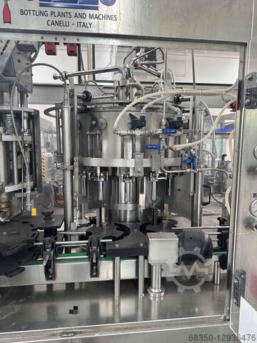 ribloc (ополаскиватель-наполнитель-укупорщик), напорный наполнитель, изобарический, с предварительным вакуумированием, производитель: Cimec Италия, тип AM DPS 12-12-1, 12 ополаскивающих форсунок, 12 наполнительных клапанов, 1 головной укупорщик, год выпуска: 2013, с регулировкой высоты, около 1500 часов работы, в настоящее время настроен на диаметры бутылок 67 мм и 85 мм.