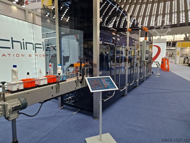 Автоматическое роботизированное размещение ручек на бутылках при их непрерывном движении к этикетировочной машине обеспечивает бесперебойную и непрерывную работу.