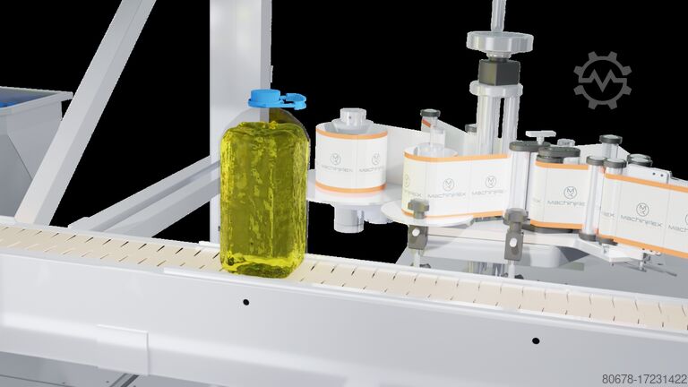 Машина наносит соответствующие этикетки на обе стороны бутылки, создавая законченный вид.