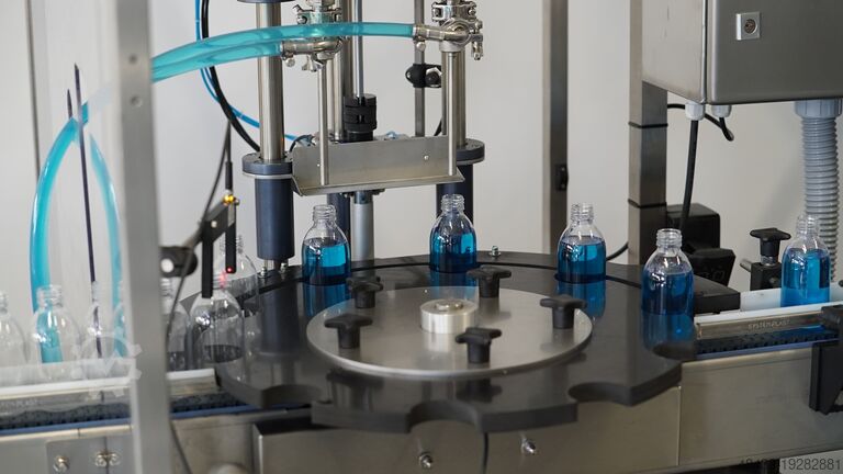 Транспортировка бутылок через цепной конвейер (3000 мм, в зависимости от заказа)